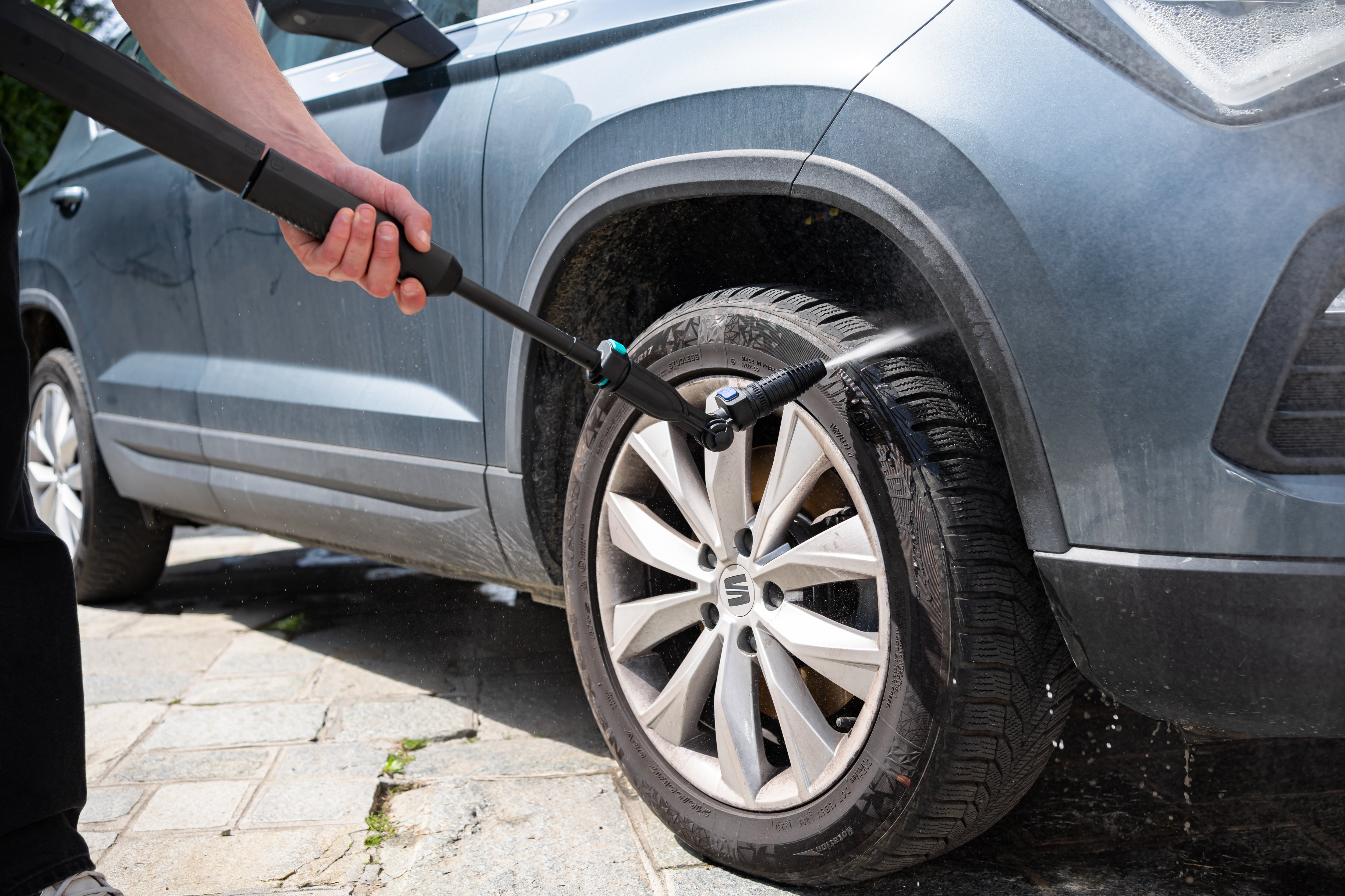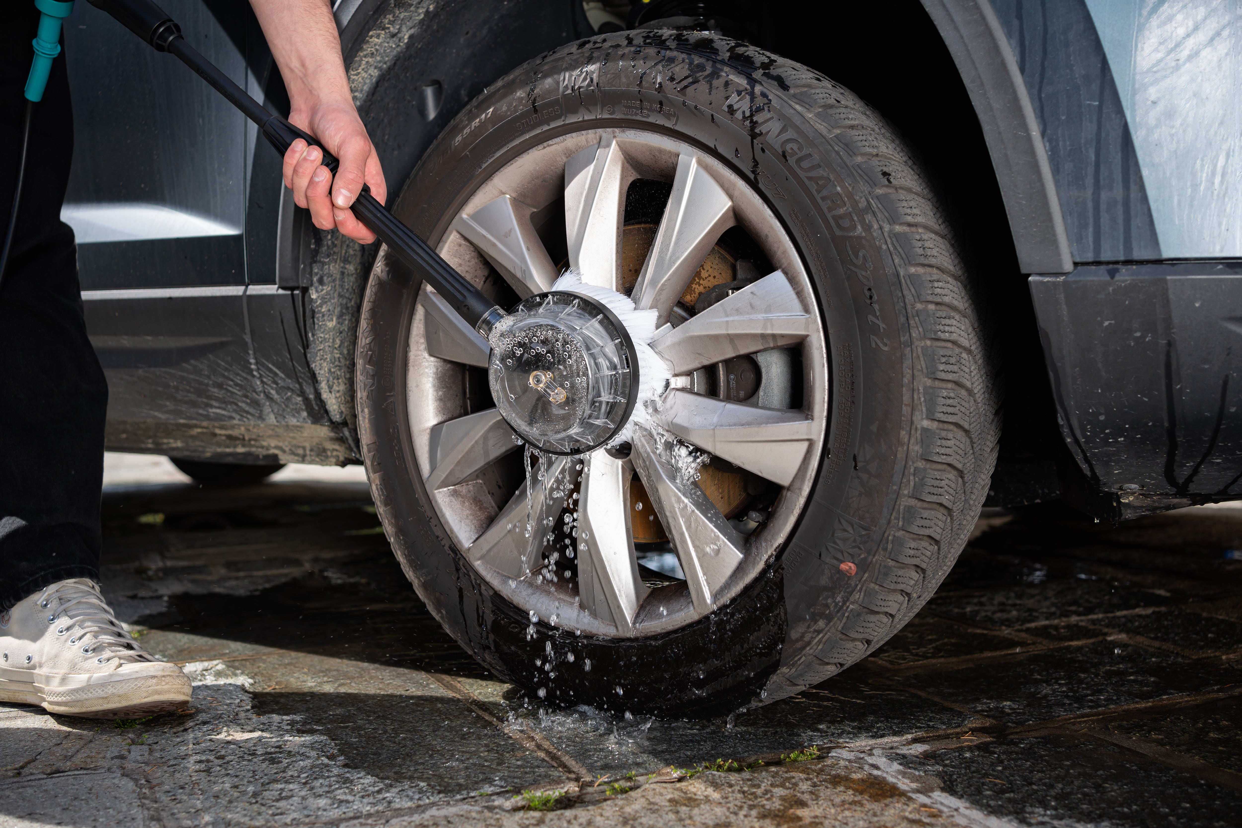 WHEELS/RIMS: the optional rim brush, fixed brush or rotary brush attachments can be very helpful here. The mechanical action of their bristles provides added scrubbing power to cut through even the most stubborn dirt.