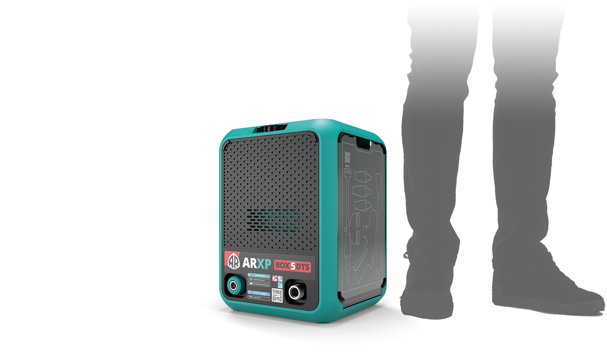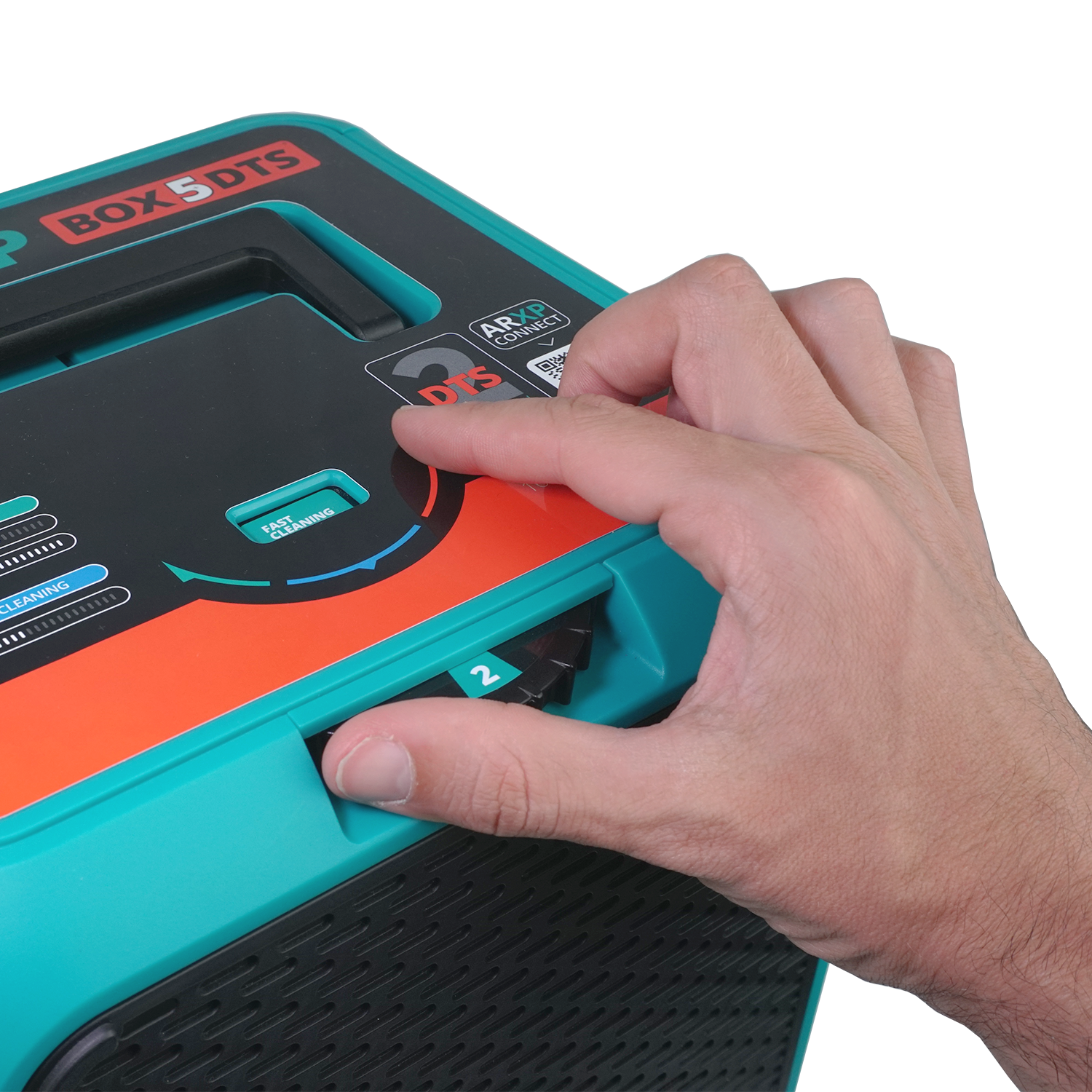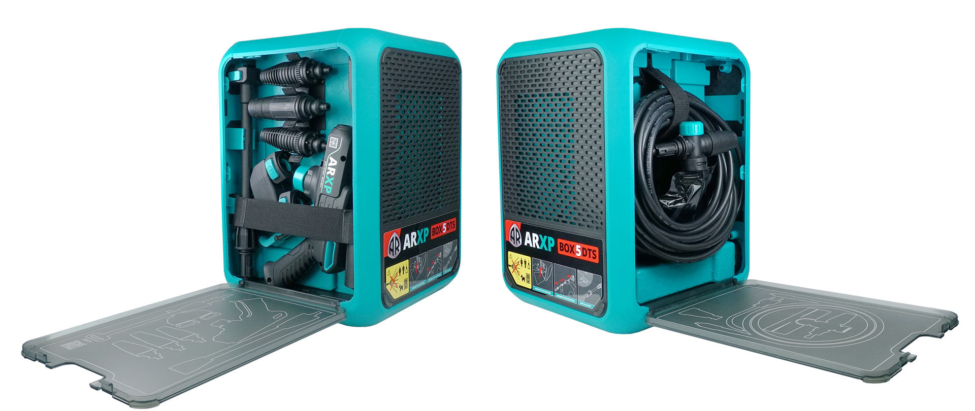 ARXP BOX5 160DTS is the high pressure washer with Dualtech Technology System. The machine contains 2 Power Units able, if operated together, to boost the water flow rate to 850 l/h, twice the average for a home & garden high pressure washer. This guarantees outstanding results in shorter washing times.