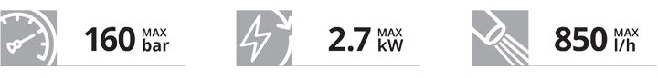 Pressure and flow rate as high as or exceeding those of top-of-the-range home & garden segment high pressure washers.